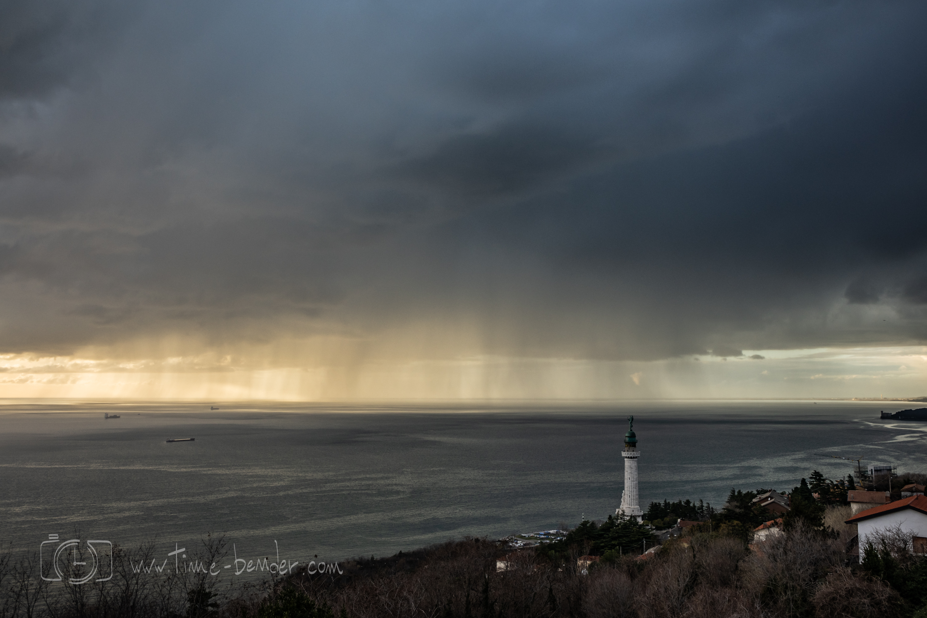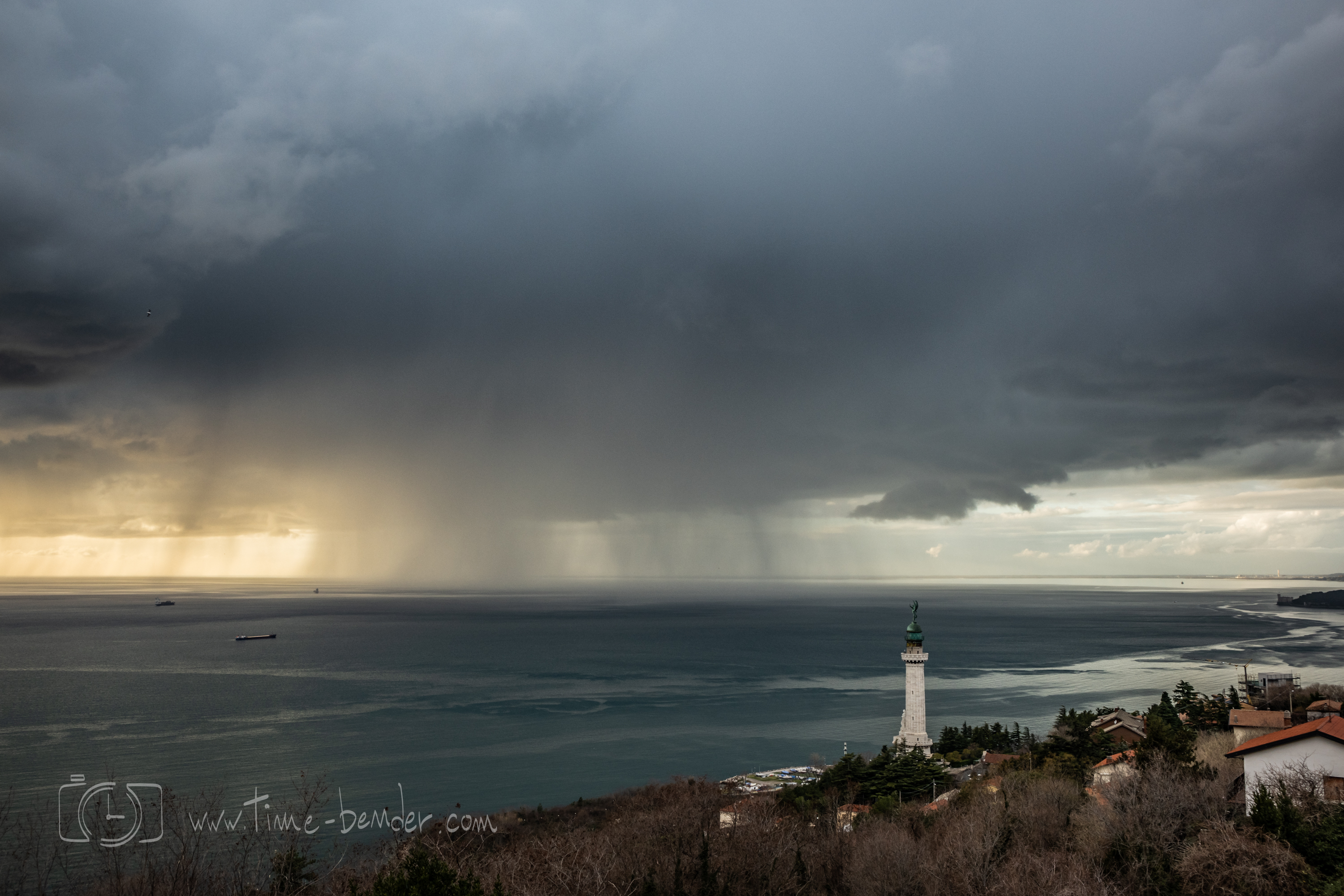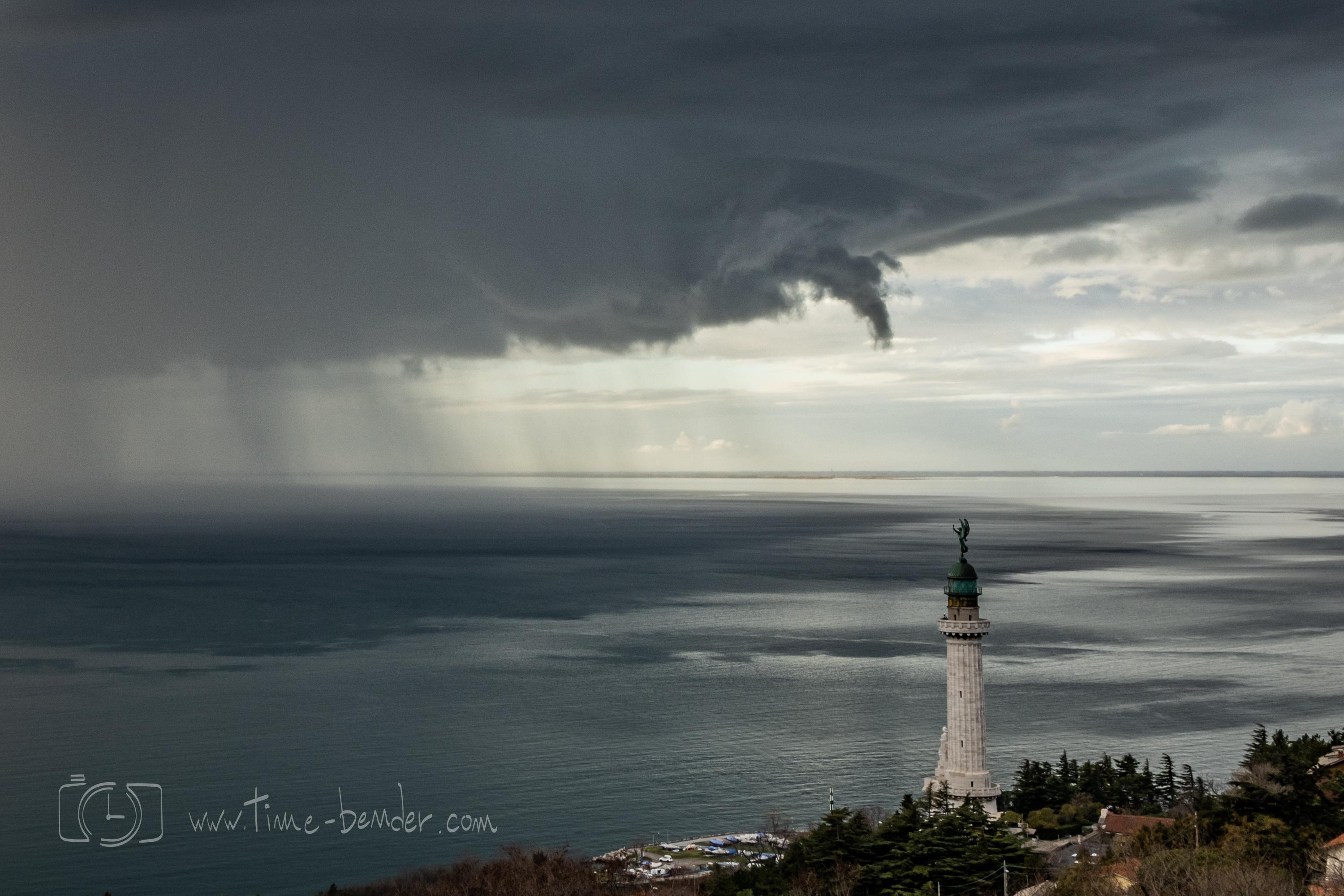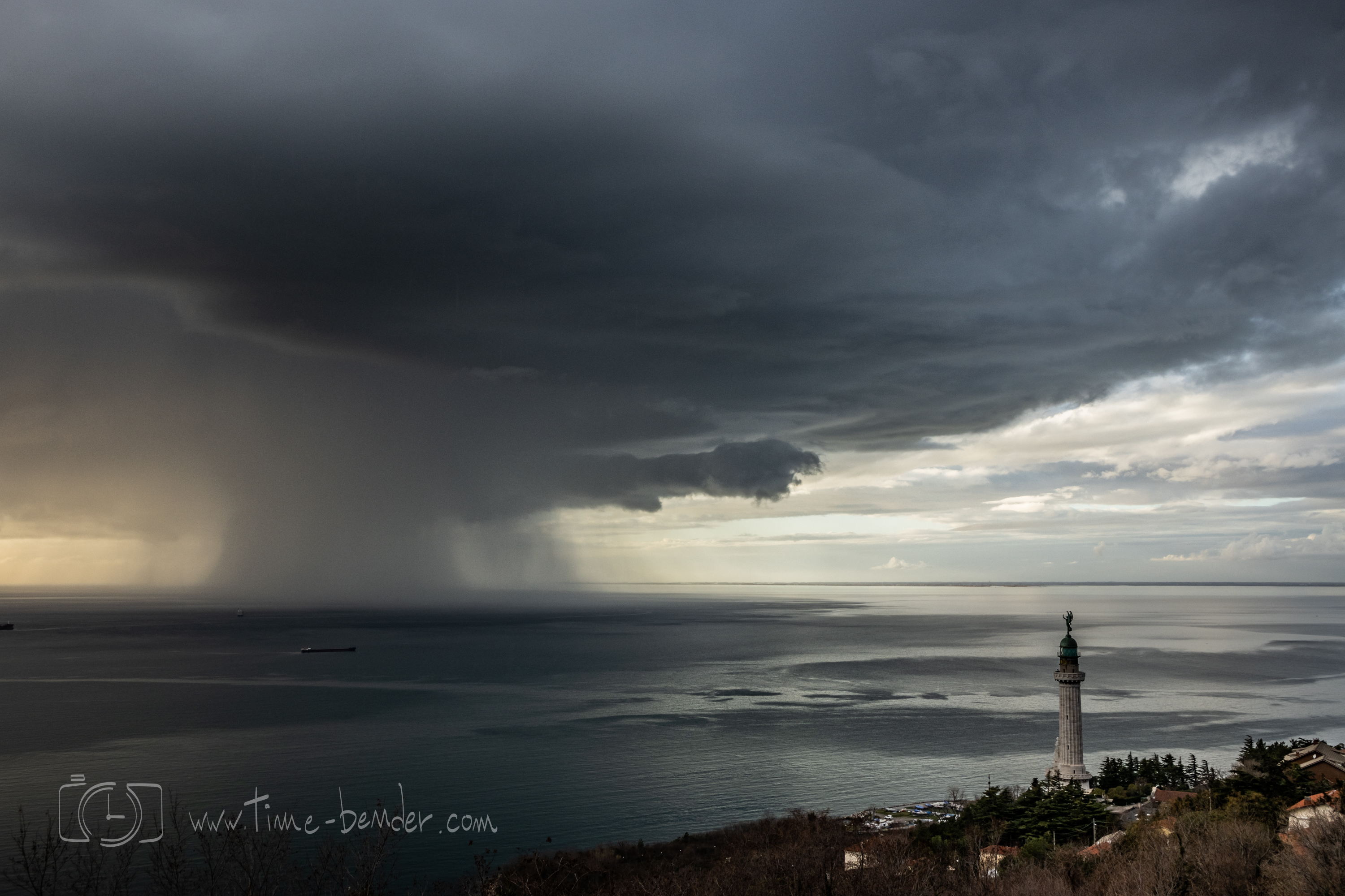 This gallery of pictures shows a beautiful microburst moving in the middle of the gulf of Trieste. Very intense, it nearly generated a waterspout. Then it all vanished in a few hours after a nice sunset.
